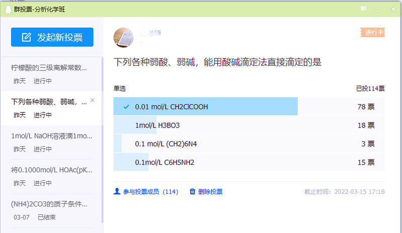 化学学院依托学校“多层次信息化学习平台”教学平台,采用已录制的慕课教学视频结合各班QQ群课堂的形式,关注同学学习情况。教研室老师每周进行教学研讨,沟通教学进度,制定统一的课程计划与进度安排,指导各班开展教学内容梳理和答疑。任课教师在学习群内对热点、难点题目组织讨论,设置投票形式的选择题,了解学生对知识点的掌握程度,对答题情况进行分析与讲解,同学们自发讨论、分享观点,互相解答,提高了学习的主动性。