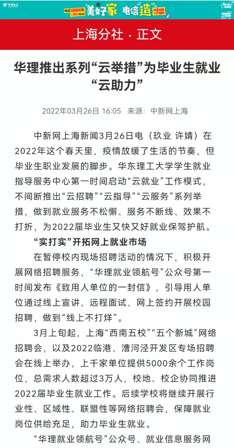 【上海科技报】华理推出系列“云举措”为毕业生就业“云助力”