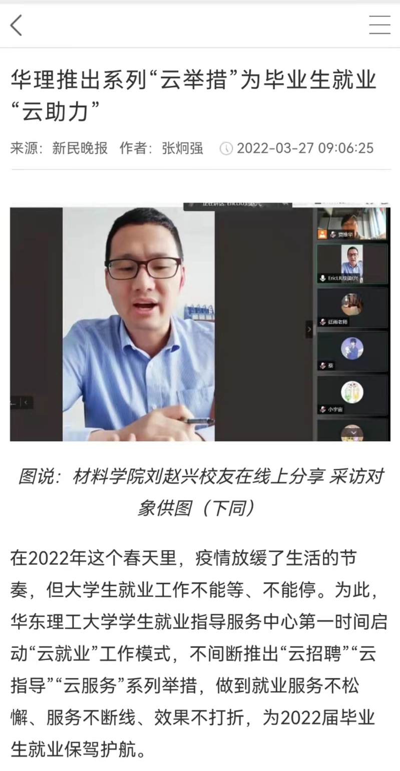 【新民晚报客户端】华理推出系列“云举措”为毕业生就业“云助力”
