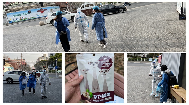 同样令人感动的,还有为徐汇校区的老师们送去水果等物资的童朦。“守护是一种接力,更是一种力量,只要我们心连心,就一定能共克时艰。”童朦表示,等社区解封后,她会第一时间投入到学院转运组的工作中。