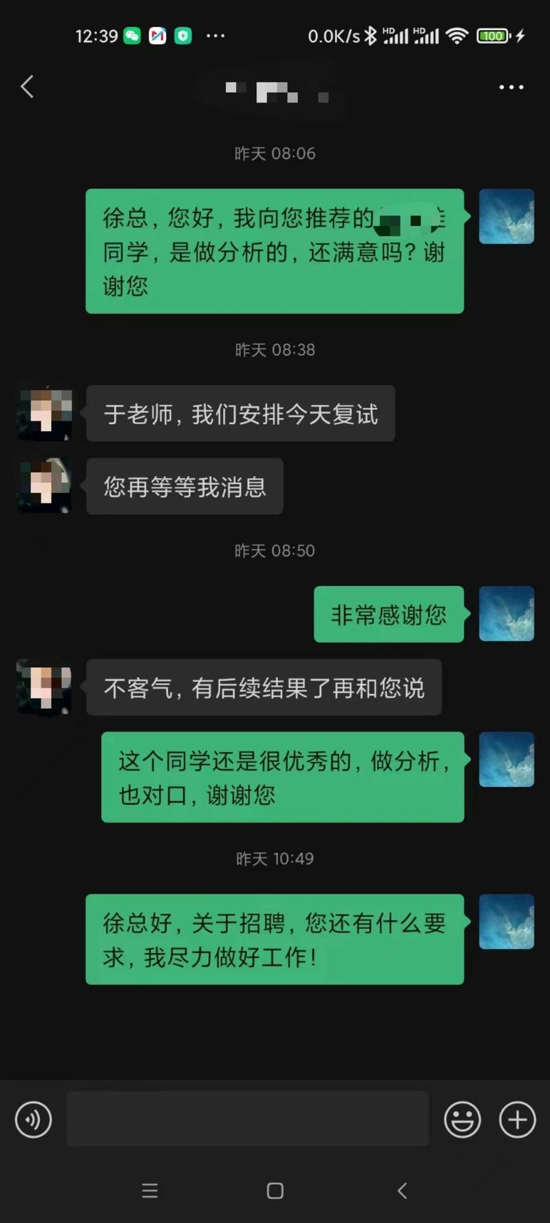 对于求职碰壁的同学,于靖会主动关心沟通,了解其思想动态和就业期待,精准对接学生需求。由于读研期间的研究方向与化工不太相关,加之缺少实习经历,徐同学对于自己的就业方向有点模糊,面试化工类岗位时比较吃力,由此渐渐陷入到了迷茫和焦灼中。于靖得知这一情况后,积极给她支招助力,并根据她所研究的课题内容,向多家公司进行了推荐。目前,徐同学已经参加了几家大型企业的面试,双方都反馈比较满意。“感谢于老师能够在百忙之中关注我、照顾我,不仅帮我推荐就业岗位,也让我明确了自己的优势,大大地增加了求职信心。”徐同学说。