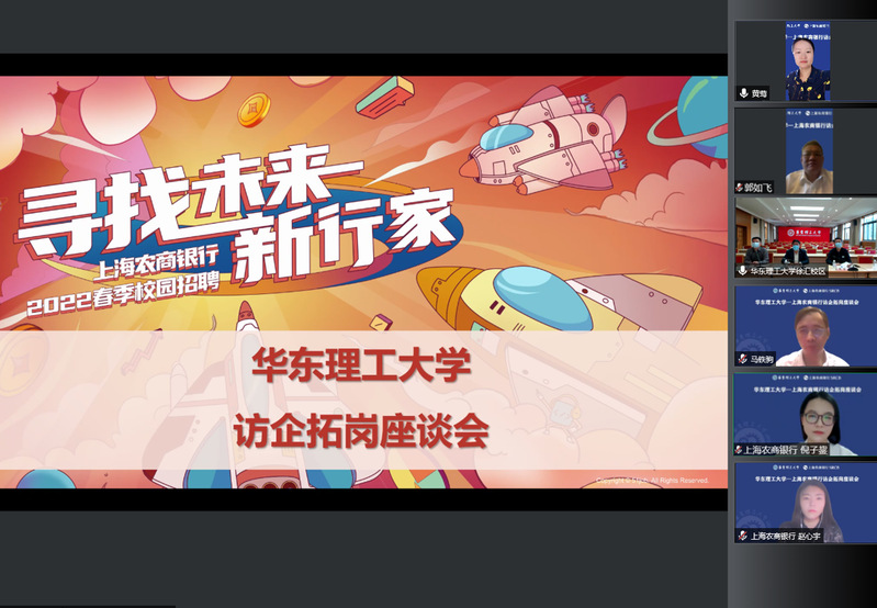 上海农商银行总行人力资源部总经理、组织部部长、我校校友郭如飞表示,上海农商银行作为全国首家在农信基础上改制成立的省级股份制商业银行,围绕上海新三大任务、“五个中心”以及“四大品牌”建设,努力打造为客户创造价值的服务型银行,建设具有最佳体检和卓越品牌的区域综合金融服务集团,目前在岗华理校友众多,很多校友走上了管理岗位,希望能更进一步搭建校企合作平台,加强校院两级深度联动。上海农商银行总行人力资源部副总经理、组织部副部长黄莺从招聘岗位、人才发展、薪酬福利等方面介绍了人才需求情况和未来培养模式,亟需大量优秀人才加入上海农商银行,欢迎华理学子选择上海农商银行。