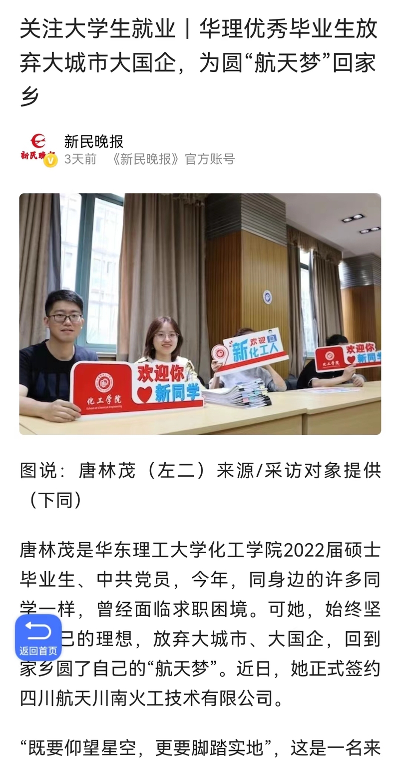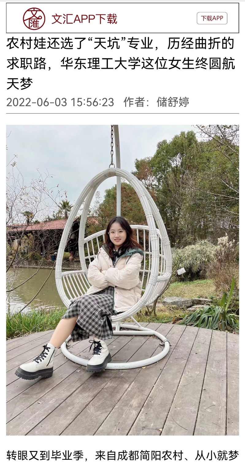 【新民晚报】关注大学生就业|华理优秀毕业生放弃大城市大国企,为圆“航天梦”回家乡
