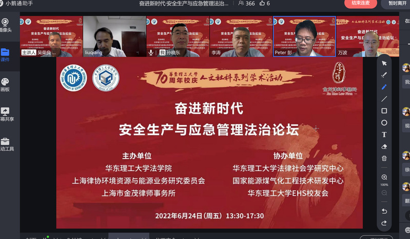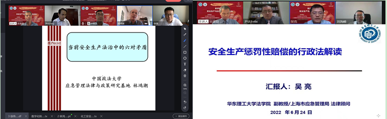 来自应急管理部、上海市人民检察院、上海化工区管委会、华东能源监管局、闵行区人民法院等实务部门,以及中国政法大学、杜邦集团、陶氏集团、上海市君澜律师事务所等多家企事业单位的20多位理论界与实务界领导、专家参加会议,线上听众超过1000人次。