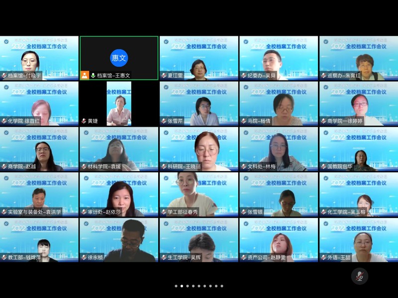 6月28日,学校以视频会议形式召开2022年档案工作专题会。校长、校档案工作委员会主任轩福贞出席会议并讲话,副校长、校档案工作委员会副主任阎海峰主持会议,校党委常委、宣传部部长夏江雯,各单位档案工作分管领导、兼职档案员以及档案馆全体工作人员180余人参加会议。