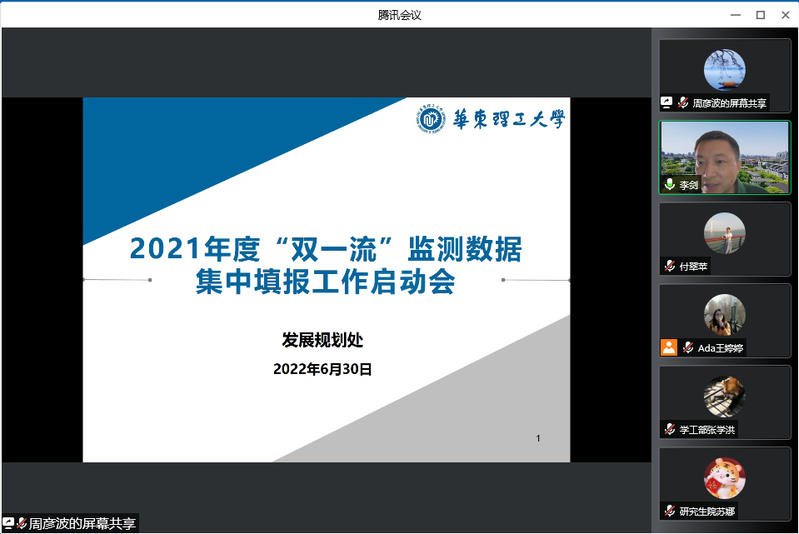 6月30日上午,学校召开2021年度“双一流”监测数据集中填报工作启动会(线上会议),副校长李剑出席并作动员。会议由发展规划处副处长周彦波主持,各部门、学院负责本次数据填报工作的老师参加了会议。