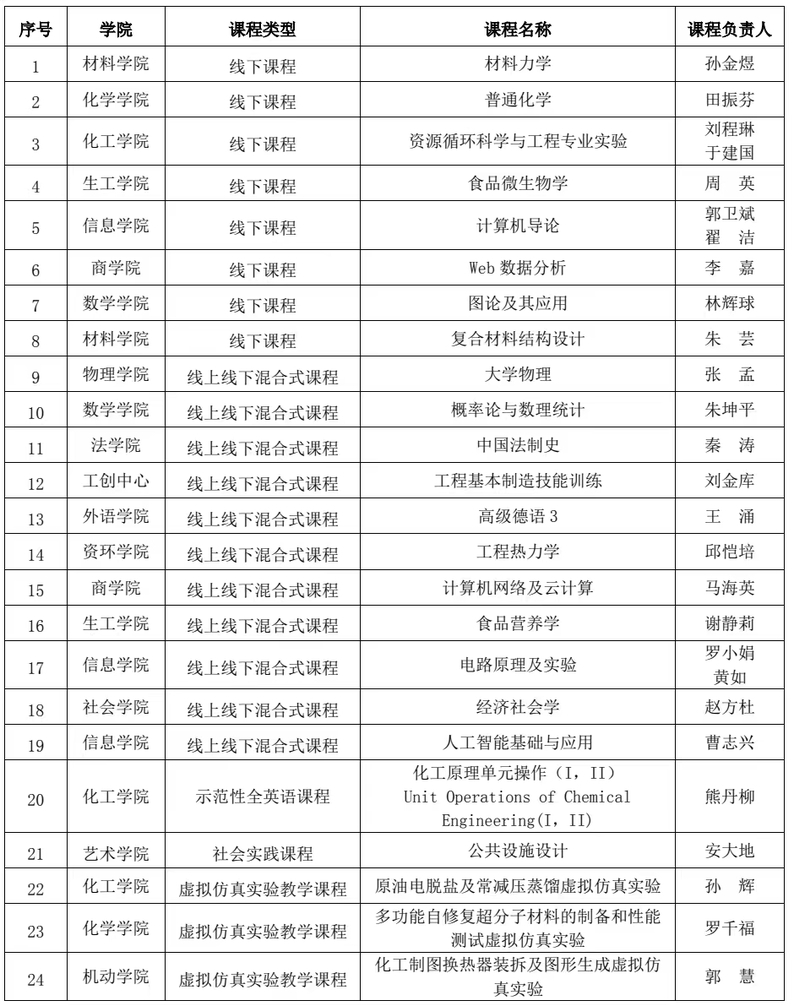 日前,2022年度上海高校市级重点课程立项名单公布,我校24门课程榜上有名,其中线下课程8门、线上线下混合式课程11门、虚拟仿真实验教学课程3门、社会实践课程1门以及全英语课程1门。