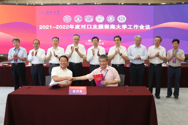 阎海峰代表学校与青海大学党委书记俞红贤签署了2022-2023年度对口支援工作协议。