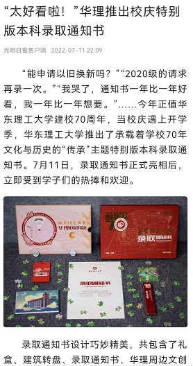 【光明日报客户端】“太好看啦!”华理推出校庆特别版本科录取通知书