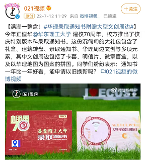 【东方网】校庆特别版录取通知书“太好看”,华理老生在线请求“以旧换新”