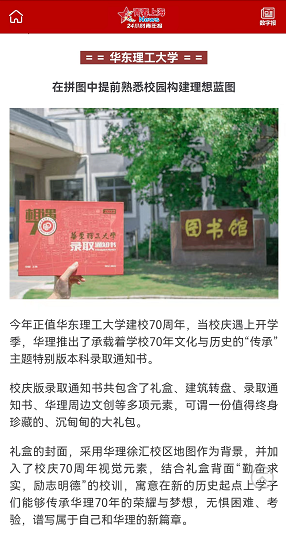 【央广网】礼盒、建筑转盘、周边文创一网打尽 华理推出校庆特别版本科录取通知书