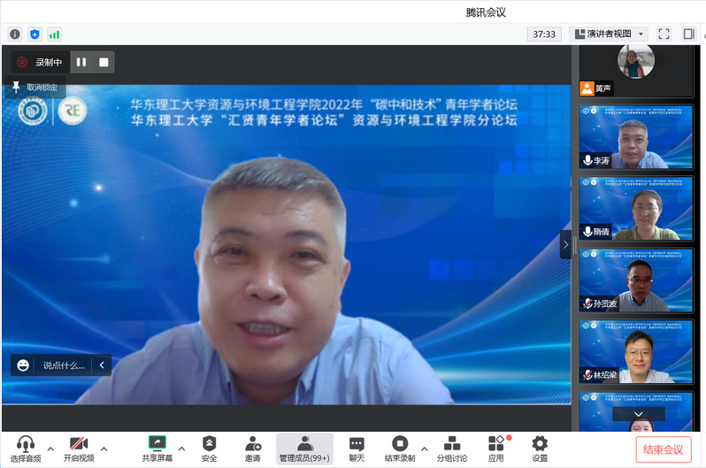 最后,汪华林就本次论坛进行了总结发言。他表示,学院连续两年举办“碳中和技术”青年学者论坛,一方面是体现华理资环学院贯彻落实国家“碳达峰、碳中和”重大战略部署的决心,另一方面也表达学院希望吸引更多青年才俊加盟的诚心。学院以“碳中和+”为重点,以数字化智能交叉为突破口,有序推进人才培养、科学研究和平台建设等工作,积极推动环境、能源、资源交叉融合发展。