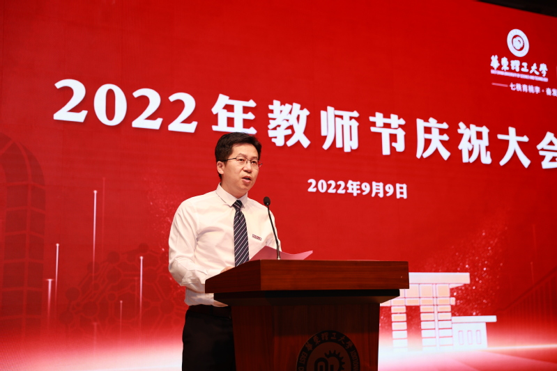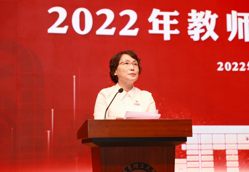 杜慧芳作题为“铸魂育人担使命 踔厉奋发启新程”的主题报告。她代表学校、代表轩福贞校长向一直以来为学校发展辛勤耕耘的广大教师表示衷心的感谢,向受到表彰的各位老师表示热烈的祝贺,向全体教职员工致以节日的问候。她指出,一年来,学校人才培养取得新成效、“双一流”建设迈出新步伐、学位点建设获得新突破、科学研究实现新飞跃、师资队伍呈现新面貌、校园基础建设得到新改善。