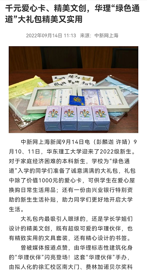 【中国新闻网】千元爱心卡、精美文创,华理“绿色通道”大礼包精美又实用