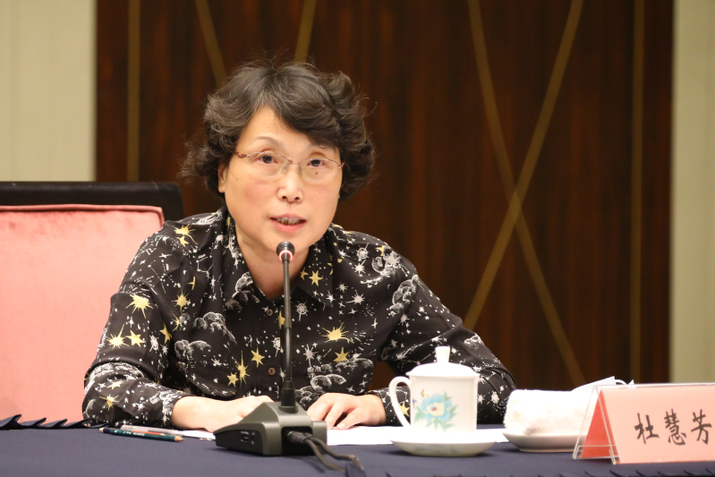 图片说明:我校党委书记杜慧芳在调研会上作交流发言